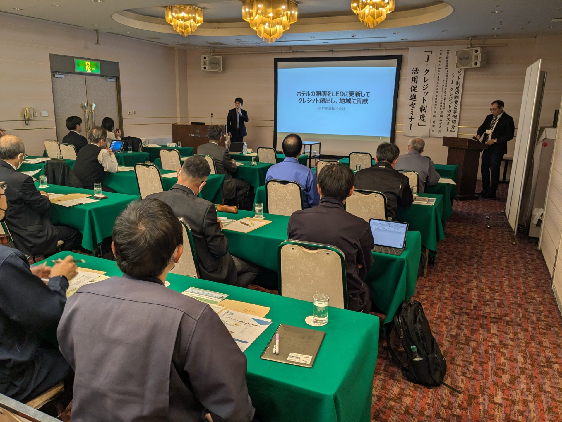2024年11月「J-クレジット制度」活用促進セミナーで講演する松月産業 代表 田所(写真左奥)