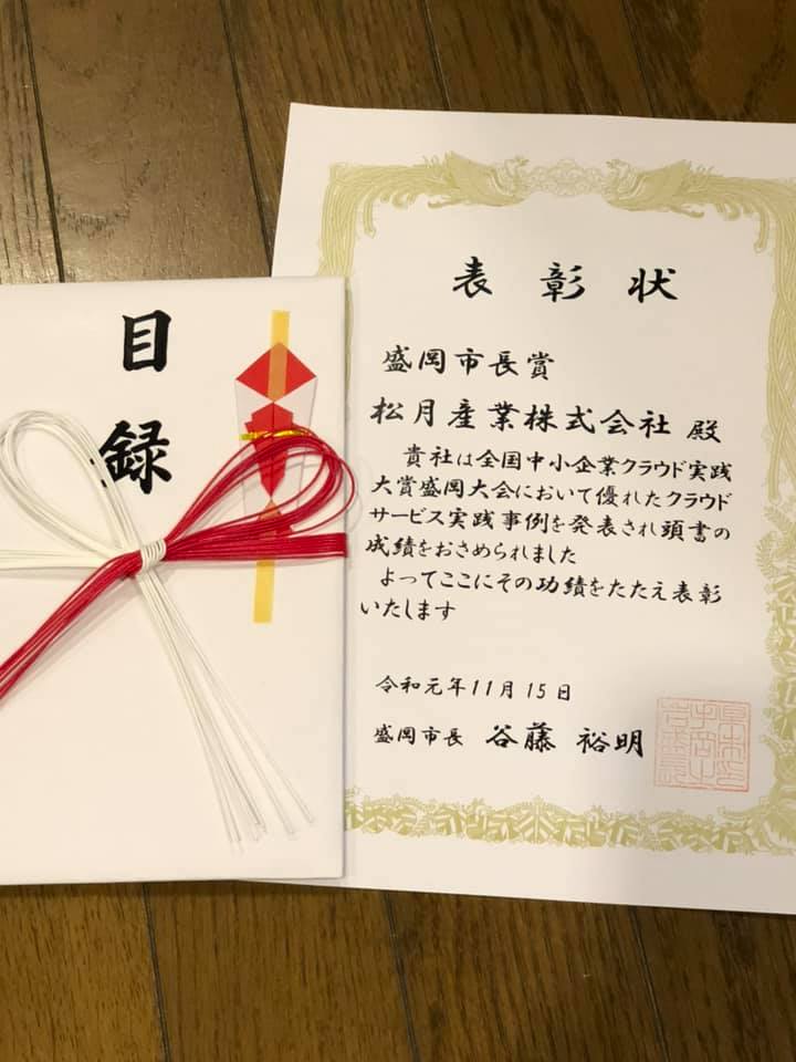 全国中小企業クラウド実践大賞盛岡大会において盛岡市長賞を受賞いたしました。